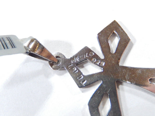 ~VINTAGE~ LARGE STERLING SILVER TAXCO MEXICO CROSS CUT-OUT PATTERN PENDANT