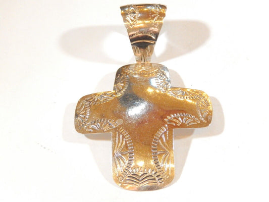 ~VINTAGE~ Artisan Stamped Taxco 925 Sterling Silver & Brass Cross Pendant