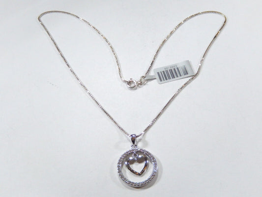 ~VINTAGE~ Sterling Silver CZ Circle of Love Pendant With Heart Dangle - 16"chain