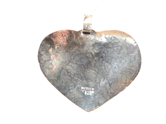 ~VINTAGE~ MEXICO TAXCO STERLING & BRASS LARGE TEXTURED HEART PENDANT- 2 1/4 "