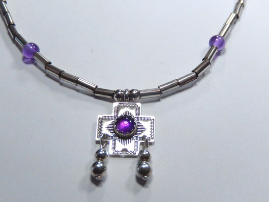 "VINTAGE" Q.T. Carolyn Pollack Sterling Silver & Beaded Amethyst 18" Necklace