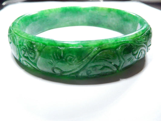 "VINTAGE" 85mm OD Ancient Natural Green Jadeite Hand-Carved Jade Bracelet Bangle