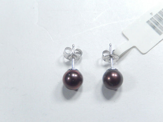 "NWT"14K White Gold 6.5mm Tahitian Cultured Pearl Round Solitaire Stud Earrings