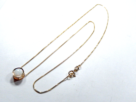 * VINTAGE* 14K YELLOW GOLD 8.5mm OPAL SOLITAIRE SLIDE PENDANT w/18"chain