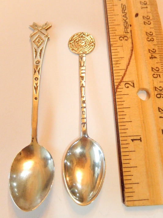*ANTIQUE* Two Native American & Mexico Sterling Silver Souvenir Spoons 3.75"