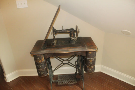 1900's Antique Minnesota Model "A" Treadle Sewing Machine with 7 Drawer Cabinet