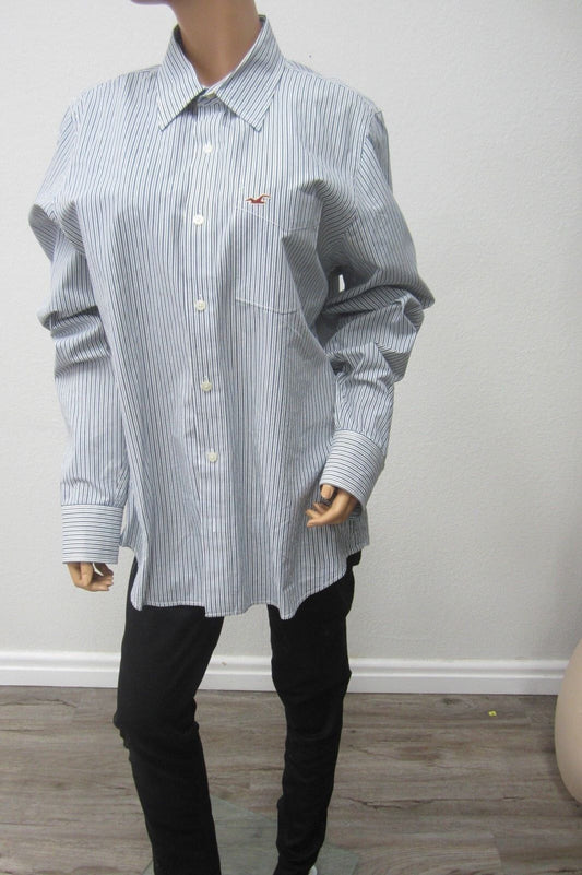 Hollister Men XL Dress Shirt White Blue Stripes Long Sleeve Button Down Front