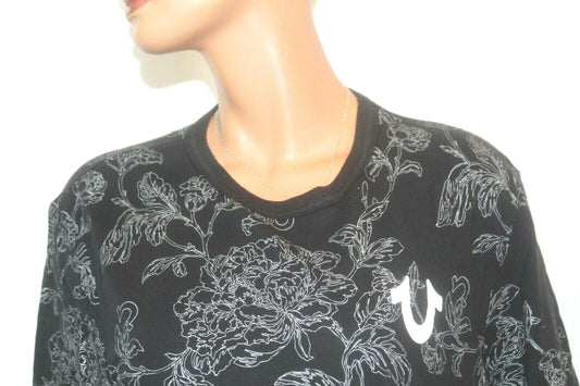 *NWT* True Religion Black Allover Bloom Metallic Floral Men's Tee T-Shirt Sz L
