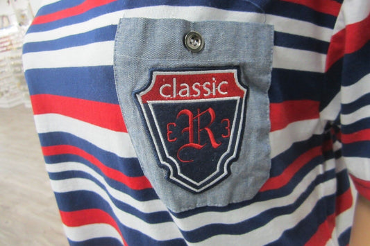 *NWT* Red Ape Unisex Red White Blue Striped V-Neck Shirt - Size Large