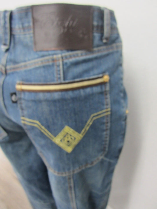VERY NICE Eight732 Distressed Gold Stitch Embroidered Men's Jeans Size W34 x L33