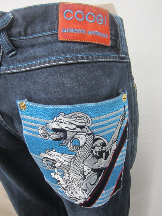 RARE MINT Men's COOGI Embroidered Dragon Jeans Austrailian Dark Wash 34x34