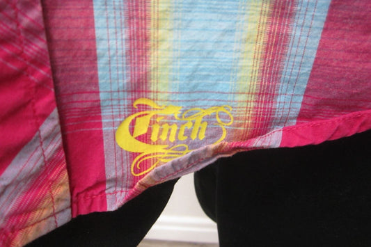 MINT Cinch Men Red Plaid Turquoise Snap Button Front Short Sleeve Western Shirt