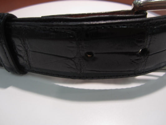 Raven Black American Aligator Womens Belt Size 30 Silvertone Buckle Very Nice