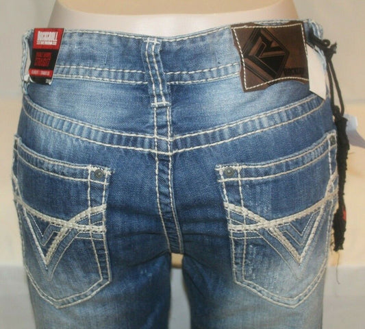*NWT* Rock Roll Denim Mens Relaxed Fit Double Barrel Straight Leg Mid Wash 31x34