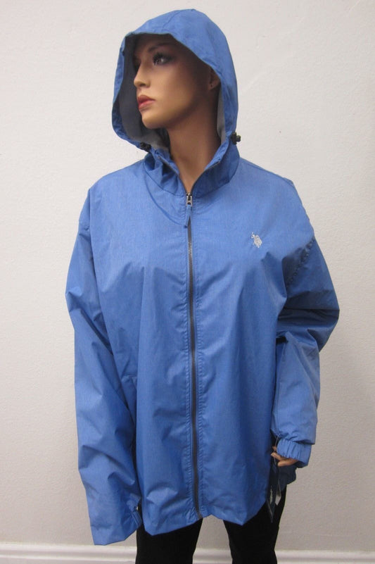 *NEW* Unisex U.S. Polo Assn Co. Rain Hooded Blue Zip Up Jacket Size Small