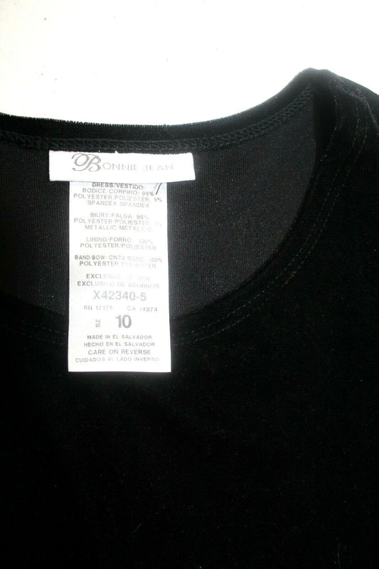 Bonnie Jean Dress Holiday Plaid Party Black Velvet Long Sleeve Stretch Sz 10