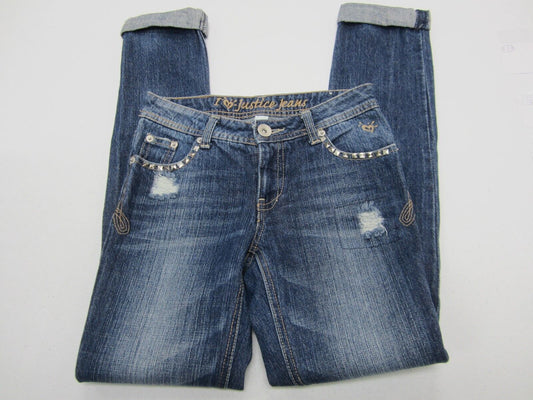 MINT Justice Girl's Blue Jeans Cuffed Leg Size 12S Simply Low Distressed Stud