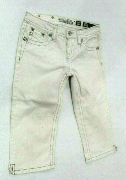 *MINT* Miss Me Girls Size 14 White Capri Jeans YK7124P3 Bling Rhinestones