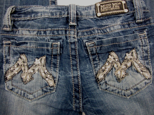 NWOT Girl's Miss Me Jeans JK8417S2 Flap Pocket Skinny Cute Bling Size 10 x 27