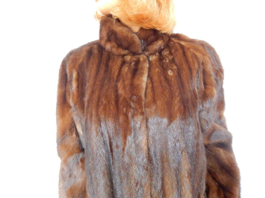 VINTAGE Womens Long Sleeve Mink Fur Coat Brown Full Length Size 13-14