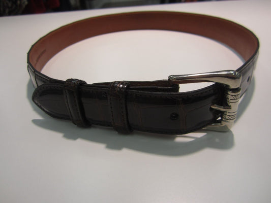 Raven Brown American Aligator Womens Belt Size 30 Silvertone Buckle Very Nice