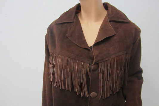 Vintage* 1970s HEAVY Suede Leather Mexico Western sz 40 Fringe Jacket Coat Brown