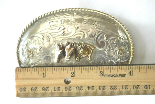 1975 B-K Silversmiths Sterling Silver Triple Horse Trophy Rodeo Belt Buckle