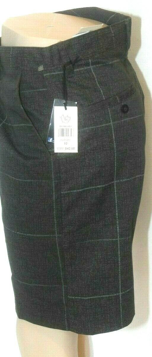 *NWT* $42. Burnside Mens Black Gray & White Plaid 5 Pocket Casual Shorts Sz 32