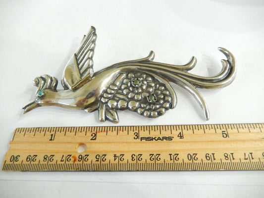 *RARE VINTAGE* HUGE 1940S MEXICO STERLING SILVER PEACOCK PIN BROOCH 5.75" x 3"