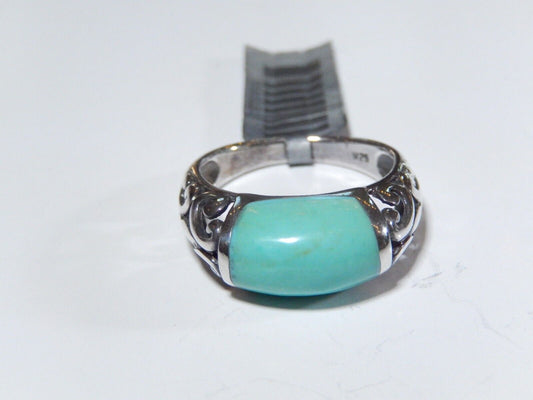 *VINTAGE* Scroll Design Sterling Silver Inlay Turquoise Ring Size 8