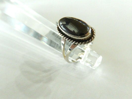 *VINTAGE* Native American HANDMADE STERLING SILVER & HEMATITE Ring Size 5.5