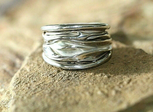 *VINTAGE* Native American Sterling Silver Ring Band 925 7.5mm Wide Size 7