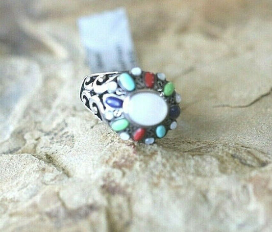 *VINTAGE* Native American Sterling Silver Multi-Color Stone Ring Size 6.25