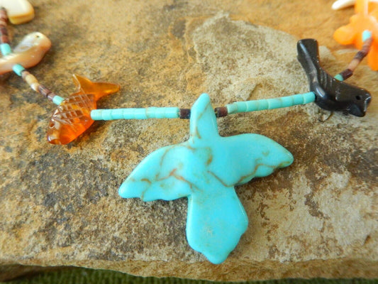 *MINT* Native Amer. Strand Fetish Necklace of Carved Birds & Animals 16" Length