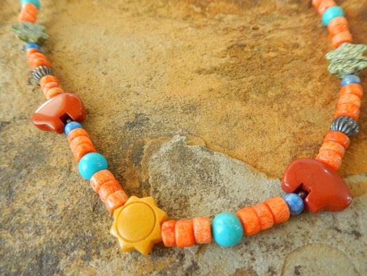 *MINT* Native Amer. Strand Fetish Gemstone Necklace 15" Length