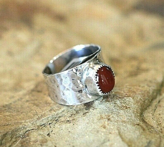 *VINTAGE* Native American Navajo Sterling Silver Wide Band Coral Ring Sz 9.75