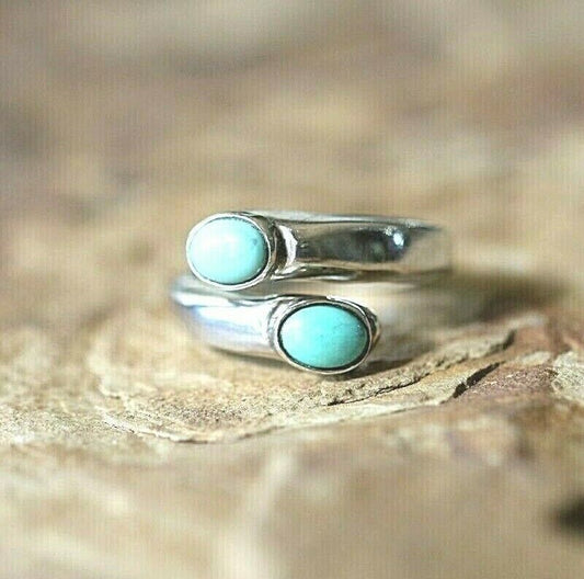 *VINTAGE* Mexico Heavy Sterling Silver Turquoise Ring Adjustable Size 6-10