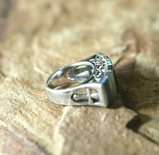 *VINTAGE* Native American Sterling Silver Large Heavy Multi-Stone Ring Size 7.5