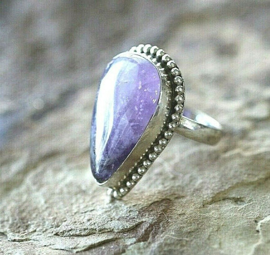 *VINTAGE* Sterling Silver Signed Navajo Lavender Chalcedony Ring Size 8.25