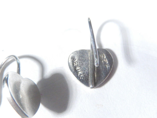 *VINTAGE* Mexico 925 Sterling Silver Handmade Heart Drop French Wire Earrings