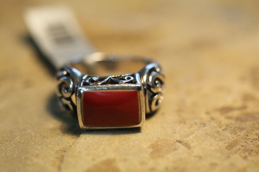 *VINTAGE* Sterling Silver Southwest Style Coral Ring Size 7.75