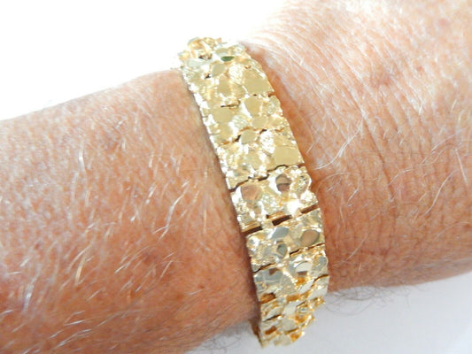 Men's 14k Yellow Gold Heavy 17mm 75.02gms Wide Nugget Panel Link Bracelet 8.25"