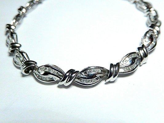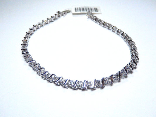 *NWT* Elegant 10K White Gold .75CT Natural Diamond Fancy Curved Link Bracelet
