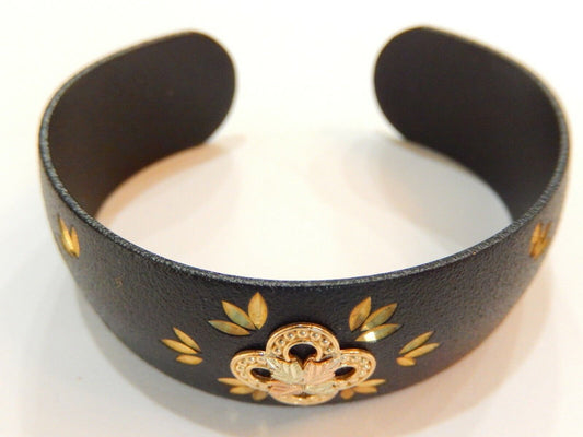 *NEW* 14K Solid Tri-Color Gold Accents Black Textured Metal Bangle Bracelet