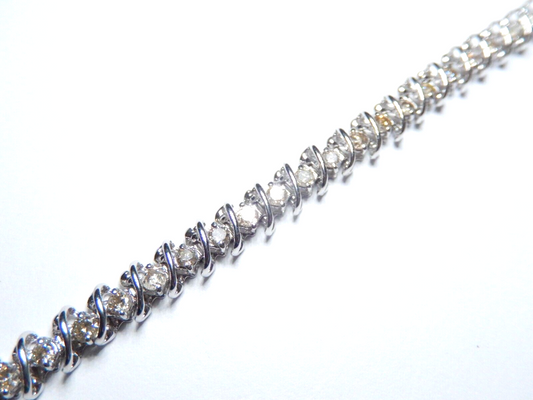 *NWT* 10K White Gold S Link 1.50 CT Champagne Natural Diamond Tennis Bracelet 7"