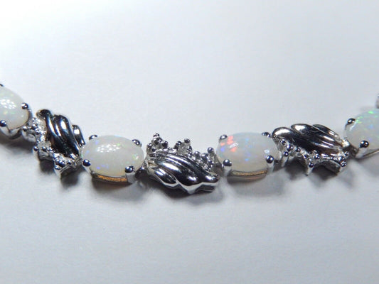 *NWT* 14K White Gold 7CT Oval Opal & Natural Diamond Fancy Tennis Bracelet 7"