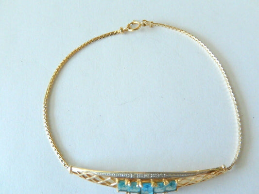 *VINTAGE* 14K Yellow Gold Blue 1.00 CT Topaz & Diamond Bracelet 7.25