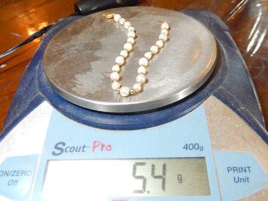 *VINTAGE* 10K Yellow Gold 6.5 mm Cultured Pearl 7.5 Inch Bracelet