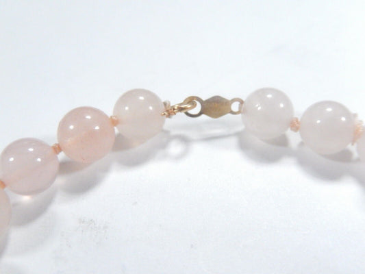 *VINTAGE* 14K Yellow Gold Beads Rose Quartz Rice Pearl Rose Quartz Bracelet 7"