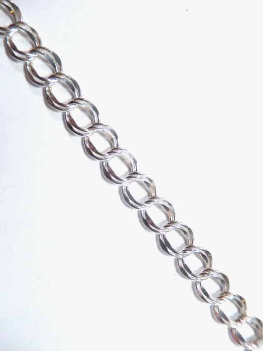 *VINTAGE** Sterling Silver Double Link Charm Bracelet - 7"